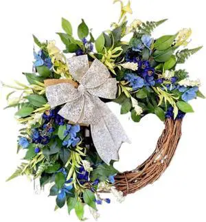 Blue Artificial Flower Wreath Dead Branch Wreath Green Plant Vine Circle Decoration (D 40 * 40cm)