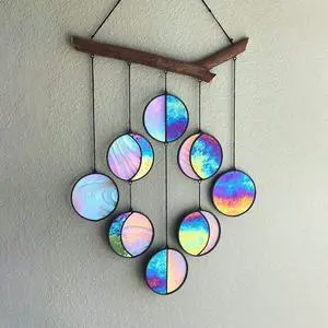 Hanging Celestial Art Moon Phase Wall Decor Stained Glass Moon Phase Ramadan Decoration