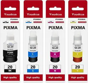 GI-20 Refill Ink Bottles Replacement for Canon PIXMA G5020 G6020 G7020 MegaTank Printer 4-Pack (Bk, C, M, Y) - High Capacity 170ML GI-20 Black Refill Ink, 100ML GI20 Color Refill Ink Bottle