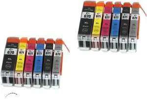 Compatible Ink Cartridges Compatible with PGI670 CLI671 Compatible with MG7760 MG7765 MG7766 TS5060 TS6060 TS8060 TS9060 Series(2Sets (12PCS))