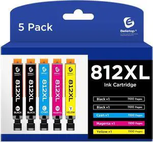 812XL Remanufactured Ink Cartridges Combo Pack Compatible with 812XL 812 XL High Yield Ink Cartridge to use with WF-7840 WF-7820 WF-7310 EC-C7000 Printers-5 Pack (BK/C/M/Y)