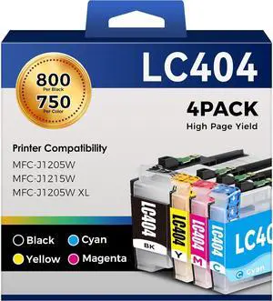 MFC-J1205W LC404 LC404XL Ink Cartridges Compatible Replacement for Brother Printer 404XL LC 404 for MFC-J1205W MFC-J1215W MFC J1205W J1215W - 4 Pack Black Cyan Magenta Yellow