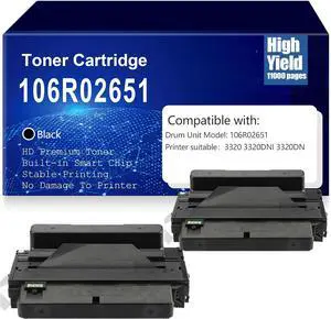 Compatible for 106R02651 Black Toner Cartridge for Xerox Laserjet 3320 3320DNI 3320DN 11000 Pages High Yield,with Chip,Black-2PC