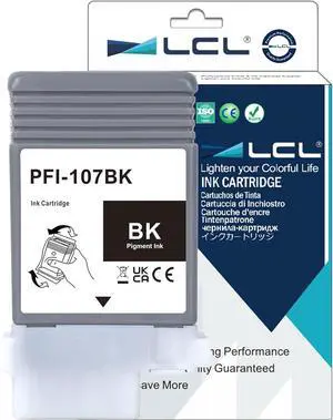 LCL Compatible Ink Cartridge Pigment Replacement for Canon PFI107 PFI-107 PFI107BK PFI-107BK 6704B001 Image Prograf iPF670 IPF 670 MFP L 24 IPF 670 Series iPF770 (1-Pack Black)