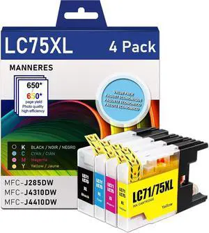 LC75 High Yield Ink Cartridges Replacement for Brother LC75 LC71 LC79 XL Ink Cartridge Compatible with MFC-J6510DW MFC-J6710DW MFC-J6910DW MFC-J280W Printer (Black, Cyan, Magenta, Yellow, 4 Pack)