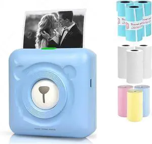 Printer Mini Pocket Printers Bluetooth Photo Printer(Blue Printer Add 9rolls)
