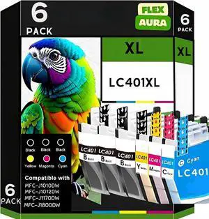 LC401XL Compatible Ink Cartridges 6 Pack High Yield Replacement for MFC-J1010DW, J1012DW, J1170DW (3 Black, 1 Cyan, 1 Magenta, 1 Yellow)