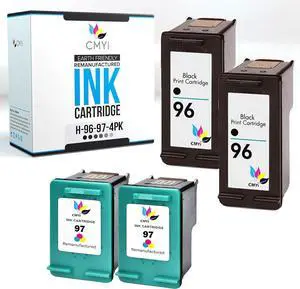 96 97 Replacement Combo Pack Ink Cartridge for HP OfficeJet 7210, 7210v, 7210xi, 7300, 7310, 7310xi, 7408, 7410, 7410xi, K7100, K7103, K7108, PhotoSmart 2605, 2608, 2610, 2610v (2 Black, 2 Color)