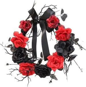 Black and Red Rose Simulation Wreath Bow Decorative Pendant (D 45cm)