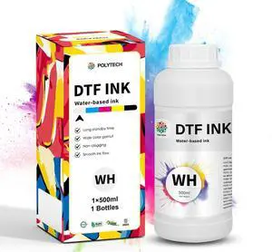 Polytech DTF White Ink 500ML for Heat Transfer Printing, Direct to Film Transfer for PET Film, High Opacity Refill for Printers ET-8550, XP-15000, L1800, L805, R1390, I3200, XP600