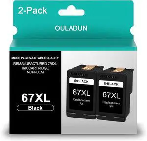 67XL High-Yield | Replacement for HP 67 XL Black Ink Cartridge Work with DeskJet 2752 2710 2755 2722 2720 2300 2330 Plus 4100 4152 4158 Envy 6055 6052 6022 Pro 6452 6455 (2 Black)