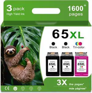 3-Pack 65XL 65 XL Compatible Ink Cartridge Replacement for HP Ink 65 HP65 XL HP65XL Black Color Combo to Envy 5055 5000 5052 5010 5070 5014 3755 3700 3772 2600 3752 2652 2655 2622 2640 Printer