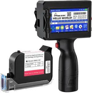Phezer Handheld Inkjet Printer Gun P15U with Quick-Drying Ink Cartridge, 0.5inch/12.7mm Nozzle Portable Handheld Printer for Text/Barcode/Logo/QR/Counter/Number/Date (with JS62 Cartridge)