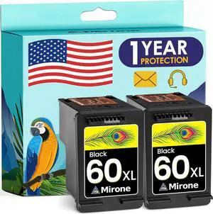 Mirone Remanufactured Ink Cartridge Replacement for HP 60XL 60 XL for Envy 100 110 120 Photosmart c4680 c4780 c4795 d110 Deskjet f4440 d2680 f2430 f4280 f4480 f4580 Printer 2 Black