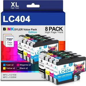 8-Pack LC404 Ink Cartridges for Brother LC404 LC404BK LC404C LC404M LC404Y Use for MFC-J1205W MFC-J1215W Printer (2BK/2C/2M/2Y)