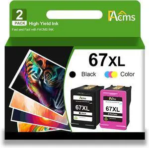67XL Ink Cartridge Combo Pack Replacement for HP 67XL 67 XL Work for 2700 2700e 2752 2752e 2742e 2755e 4100 4100e 4152e 4155e 6000 6055e 6400 6458 Printer1 Black,1 Color