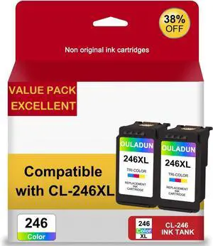 246XL Color Ink Cartridge Remanufactured for Canon CL-246XL 246XL Combo Pack Works with Canon MX490 MX492 TR4520 TR4522 MG2500 MG2522 TS3100 TR4500 (2 Tri-Color)