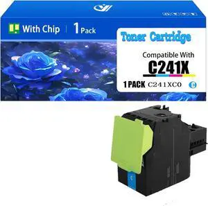 C241X Toner Cartridges Compatible for Lexmark C241XC0 Cyan Toner Cartridge Work for Lexmark C2425 C2535 MC2425 MC2535 MC2640 Printer