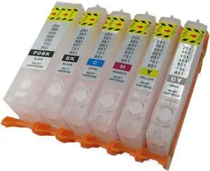 6PCS Refillable Ink Cartridge Compatible with PGI-250PGBK CLI-251BK for MG6320 MG7120 MG7520 IP8720 with ARC Chip