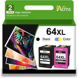 64XL Ink Cartridges Combo Pack Replacement for HP 64 64 XL Ink Cartridges Black and Color Compatible for 7858 7855 7120 7155 7158 7164 6255 6252 6232 (1 Black, 1 Color)