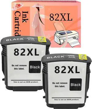 Compatible Ink Cartridge Replacement for HP 82XL 82 C4844A CH565A C4911AC4912A C4913A Work with DESIGNJET 500 500PS 800 800PS 820MFP 815M Printer 2 Black