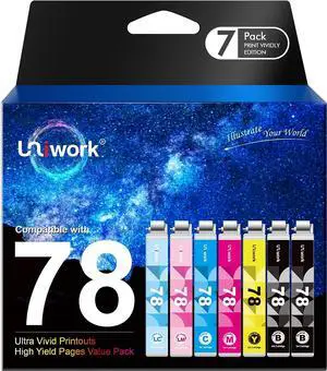 Uniwork 78 Ink Cartridge remanufactured for Epson 78 T078 use in Artisan 50 Stylus Photo R260 R280 R380 RX580 RX595 RX680 Printer Tray (7 Pack)