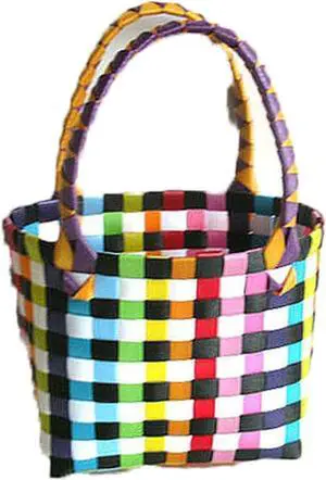 Fruit Bowl Basket Colorful Small Square Bag Plastic Fruit Vegetable Basket Bag Beach Picnic Basket Storage Organizer (Color : 02) (2)