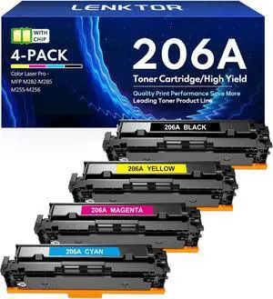 206A Toner Cartridges 4 Pack High Yield (with chip) Replacement for HP Color Pro MFP M283fdw M283cdw Pro M255dw M283 M255 Series Printer Ink (Black Cyan Yellow Magenta)