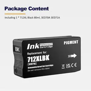 712XL 712 XL 712 Ink Cartridges Replacement for DesignJet T650 T630 T250 T230 T210 Studio Plotter Printer (1-Pack, 80-ml Black)