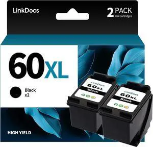 LinkDocs Remanufactured 60XL High Yiled Black Ink Cartridges Replacement for HP 60 60XL Black Ink CC640WN CC641WN to use with HP PhotoSmart C4795 C4640 D110 F4480 F4440Envy 100 110 Printer (2 Black)