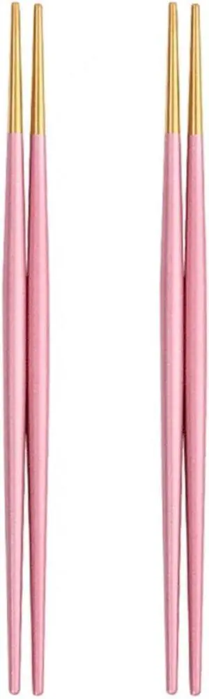 Chopsticks 2 Pairs 304 Stainless Steel Chopsticks, Non-Slip Pointed Chopsticks,Kitchen Utensils Reusable Metal Chopsticks,Sushi Tableware (Color : White Gold) (Pink Gold)