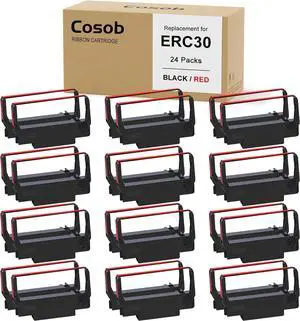 Replacement for ERC30 ERC-30/34/38 B/R ERC 30 Ribbons,24 Pack,Black and Red