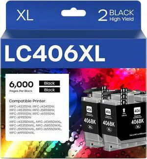 LC406XL LC406 Ink Cartridges for Brother LC 406XL LC 406 XL for MFC-J4335DW MFC-J5855DW MFC-J6555DW MFC-J4535DW MFC-J6955DW MFC-J4345DW MFC-J5955DW Printer (Black, 2 Pack)