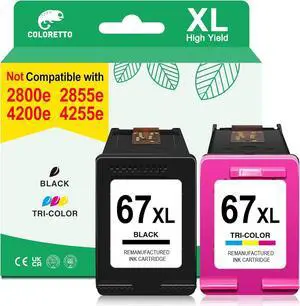 COLORETTO 67XL Ink Cartridge for HP Ink 67 for HP Deskjet 2755e Ink Cartridges for Deskjet 2700 2752e 2742e 4100e 4120e 4155e Envy 6000 6455e 6458e 6452e HP67 Ink Cartridges Black/Color Replacement