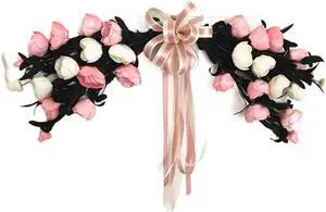 White Powdery Silk Knot Rose Simulation Flower Artificial Flower Hanging Decoration Door Decoration Wreath Lintel Decoration Flower (D 62 * 10cm)