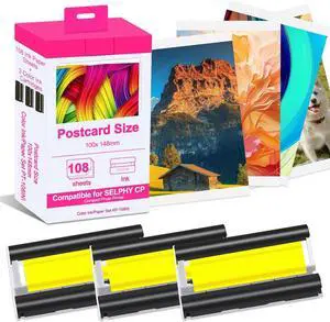 Compatible with Canon Selphy CP1500 3 Ink Cartridge & 108 Sheets 4x6 Photo Paper Set Refill,for Selphy CP1500 CP1200 CP1000 CP910 CP900,Water & Oxidation-Proof