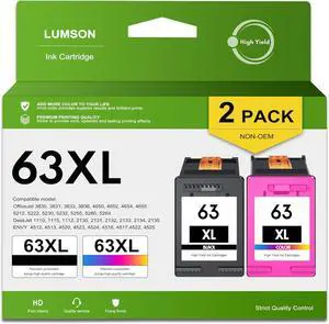 63XL Ink Cartridge Combo Pack Replacement for HP Ink 63 Works with Envy 4500 Series, DeskJet 1112 2100 3600 Series, OfficeJet 3800 4600 5200 Series (1 Black, 1 Tri-Color)