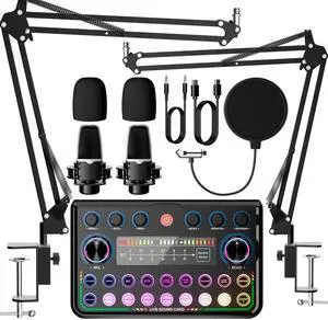SATEER Podcast Microphone Bundle, BM-800 Condenser Mic with Live Sound Card Kit, Podcast Equipment Bundle with voice changer and Mixer functions for PC Smartphone Studio Recording & Broadcasting