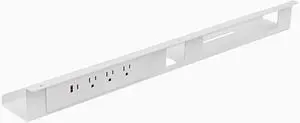 Desky Mini Cable Tray - Under Desk Wire Organizer with Mounting Screws, Compact Metal Cable Management Tray for Office Desks - White, 4 Plug