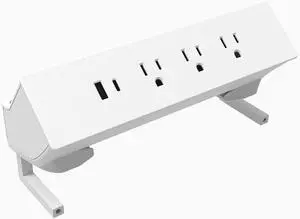 Desky On-Desk Power Rail - Clamp-On Power Strip with 3 Outlets & 2 USB Ports, Surge Protection for Home Office & Workstations - White - Connecting Junction
