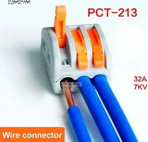 5Pcs/lot PCT-213 Universal Compact Wire Wiring Connector 3 pin Conductor Terminal Block With Lever AWG 0.08-2.5 square hard wire