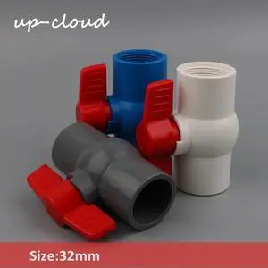 1pc PVC 1" x 1" Thread,32mm to 32mm Ball Valve Slip Shut Handle Valve PVC Pipe Fittings Plumbing Adapter Water Tube Connector