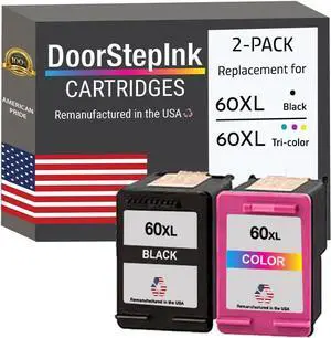 DoorStepInk Remanufactured in The USA Ink Cartridge Replacements for HP 60XL 60 XL Black and Color for PhotoSmart C4780 C4795 C4680 C4650 D110 D110a DeskJet F4480 F4280 F4580 D2530 D2545 Envy 100 111