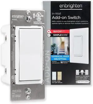 Enbrighten Add-On Switch QuickFit and SimpleWire, In-Wall Rocker Paddle, Z-Wave ZigBee Wireless Smart Lighting Controls, NOT A STANDALONE Switch, 46199 , White and Light Almond