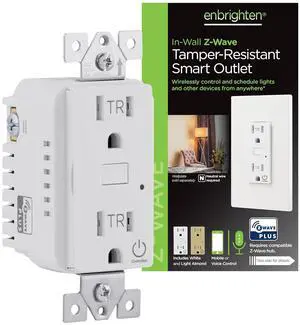 Enbrighten Z-Wave Plus in-Wall Smart Tamper-Resistant Outlet, Compatible with Alexa & Google Assistant, 1 Smart Outlet & 1 Always On, Hub Required, White