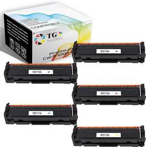 (5 Pack Value Combo) TG Imaging Compatible Toner Cartridge 2xW2110A W2111A W2112A W2113A HP206A 206A Worked in MFP M283fdw Printer