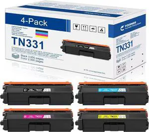 TN331 Toner Cartridge: 4-Pack TN-331BK TN-331C TN-331M TN-331Y Replacement for Brother TN-331 for HL-L8350CDW HL-4150CDN MFC-L8850CDW MFC-9970CDW MFC-L8600CDW Printer