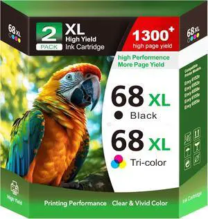 68XL Ink Cartridges Combo Pack, High Yield Black and Tri-Color Ink Replacement for 68 Series, Compatible with Envy 6555e, 6552e, 6155e, 6152e, 6558e Printers (1 Black, 1 Color)