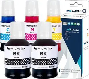 LCL Compatible for Canon GI21 GI-21 GI-21PGBK GI-21BK GI-21C GI-21M GI-21Y (5-Pack, 2Black Pigment 170ML, CMY Dye 70ML) Ink Bottle for Canon PIXMA G1220 G3260 G2260