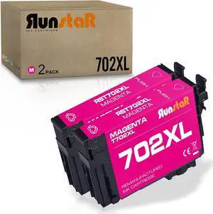 Run Star 2 Packs 702XL Magenta Remanufactured Ink Cartridge Replacement for Epson 702XL T702XL use for Epson Workforce Pro WF-3720 WF-3730 WF-3733 Printer (2 Magenta)